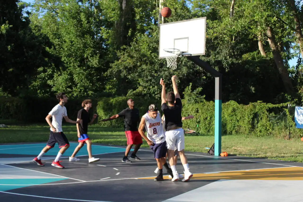 Nel campo di fianco ci sono ragazzi grandi che giocano a pallacanestro. Si divertono anche loro, in qualcuno c'è sicuramente uno stato di flusso, un'espressione di divertimento.